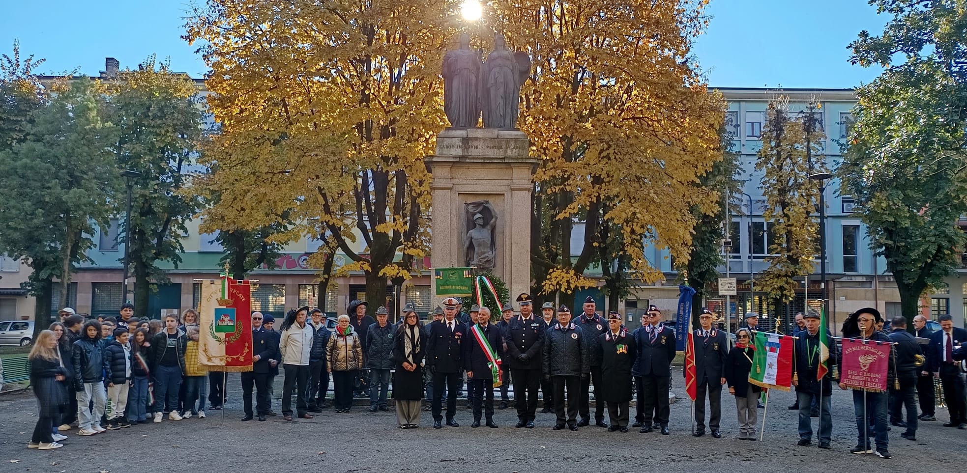 Alcuni momenti della celebrazione del 4 novembre presso il monumento dei Caduti di piazza Cattaneo.