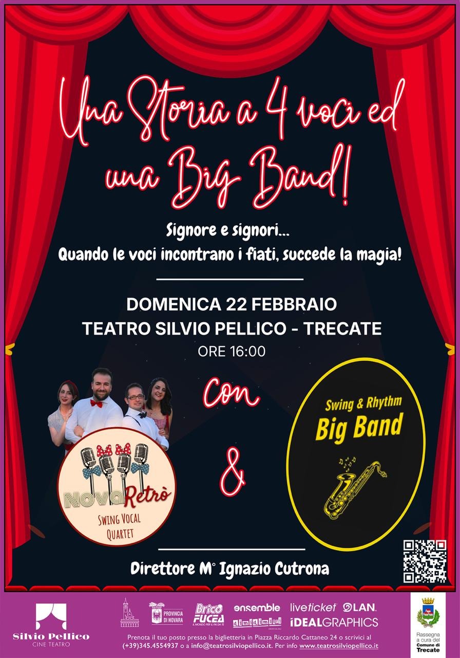 Domenica 22 Febbraio, alle ore 16:00, appuntamento al Cine Teatro "Silvio Pellico" con “Una Storia a 4 Voci ed una Big Band”.